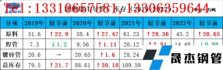 受冬奧會消息影響,與往年不同,2022年春節前后,部分焊鍍管廠產線停工晚于往年。節前最后一周在統計管廠產能利用率40%左右,較去年高7個百分點,部分管廠產線為交單年前趕工至農歷二十八九。