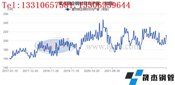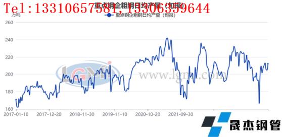 據中國厚壁無縫鋼管工業協會統計數據顯示,2024年3月下旬重點鋼企生鐵日均產量186.61萬噸,旬環比上升1.63%,同比下降6.96%;3月下旬重點鋼企粗鋼日均產量212.18萬噸,旬環比上升3.63%,同比下降6.14%;3月下旬重點鋼企厚壁鋼管日均產量211.77萬噸,旬環比上升7.76%,同比下降6.53%。