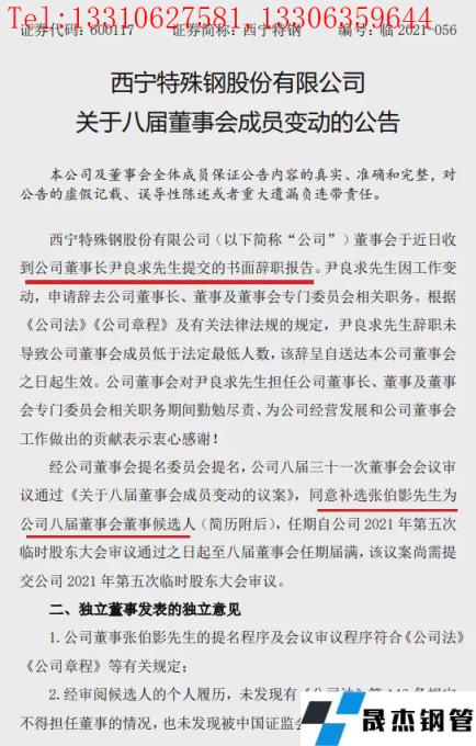 西寧特鋼董事長尹良求、總工苗紅生辭職!張伯影擬任董事!