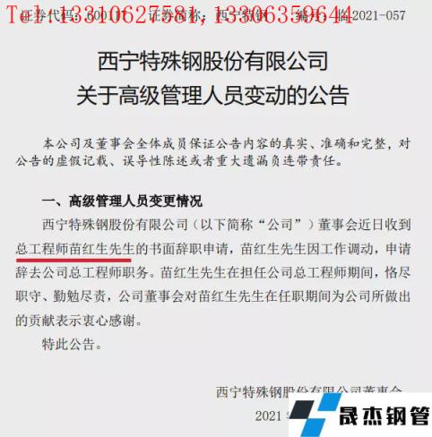2021年12月10日,西寧特鋼發(fā)布公告,公司人事變動:董事長尹良求、總工苗紅生辭職!張伯影擬任董事!