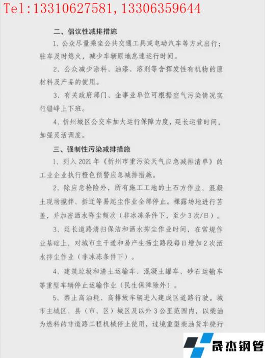 1、列入2021年《忻州市重污染天氣應急減排清單》的工業企業執行橙色預警應急減排措施。2、除應急搶險外,所有施工工地的土石方作業、混凝土現場攪拌、拆遷等易起塵作業全部停止。3、建筑垃圾和渣土運輸車、混凝土罐車、砂石運輸車等重型車輛停止運輸作業(民生保障除外)。