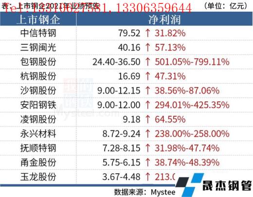 免責聲明:本網站(山東聊城晟杰無縫鋼管廠m.vsocial.cn)刊載的“2021年鋼企利潤創新高,中信特鋼實現凈利近80億”等均源于網絡,版權歸原作者所有,且僅代表原作者觀點,本文所載信息僅供參考。轉載僅為學習與交流之目的,如無意中侵犯您的合法權益,請及時聯系刪除。本網站刊登此篇文章并不意味著本站贊同其觀點或證實其內容的真實性,我們不對其科學性、嚴肅性等作任何形式的保證。如果侵犯了您的版權,請盡快聯系我們予以撤銷,謝謝合作!