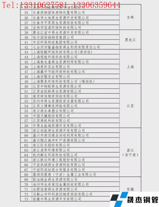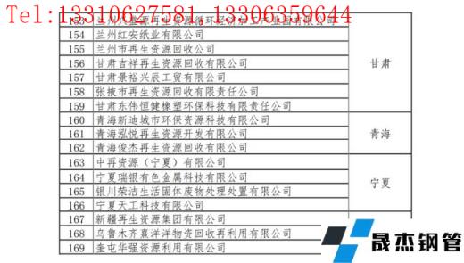 重點聯(lián)系再生資源回收企業(yè)名單: