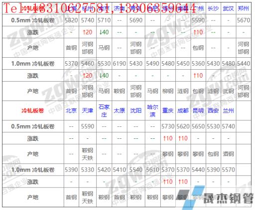全國(guó)23個(gè)主要市場(chǎng)1.0mm 冷軋板卷平均價(jià)格5476元/噸,較上個(gè)交易日上調(diào)1元/噸。
