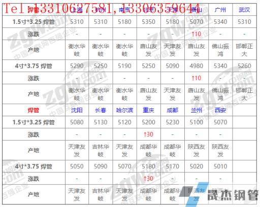 全國(guó)15個(gè)主要市場(chǎng)4寸*3.75 焊管平均價(jià)格5149元/噸,較上個(gè)交易日上調(diào)2元/噸。
