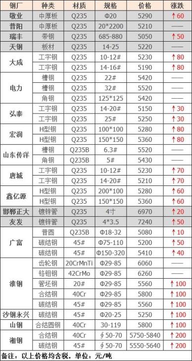 上調(diào)21家,占比91.3%,調(diào)價幅度30-210元/噸;