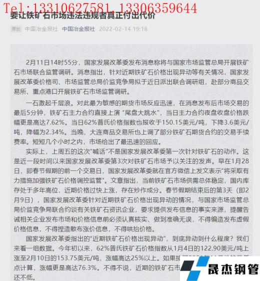 2月9日發改委價格司、市場監管總局價監競爭局曾聯合約談有關鐵礦石資訊企業,要求提供發布信息的事實來源,提醒告誡相關企業發布市場和價格信息前必須認真核實,做到準確無誤,不得編造發布虛假價格信息,不得捏造散布漲價信息,不得哄抬價格。