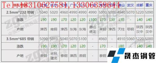 全國12個主要市場2.5mm*232 帶鋼平均價格5026元/噸,較上個交易日下調50元/噸。