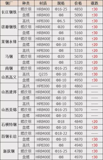 22日廣東河源德潤鋼鐵到廠漲30-50:鋼筋切粒3480;邊角料,新鋼板料3450;純鋼筋頭,直鋼筋3430;模具鋼、料頭圓鋼、軌道鋼、火車輪3430;硅鋼片停收;冷軋、熱軋、碎料沖子3380;優(yōu)重3430;鍛打料、馬蹄鐵3430;重廢3400;機械生鐵、高碳鋼、鑄鋼件、生熟混裝3400;厚剪3350,不含稅。