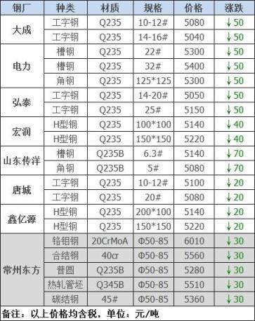今日型、特鋼共8家無縫鋼管廠家調價發布,其中: