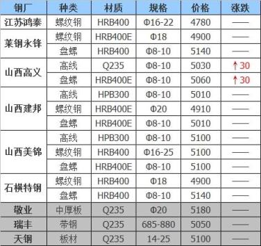 22日江陰興澄特鋼開始正常收貨,鋼板料3990,工角槽3880-3850,剪料3810-3710,普爐料3650-3550以上均為含稅價,聯系電話金敏13815123456。疫情期間外地車輛進江陰請牢記注意事項。