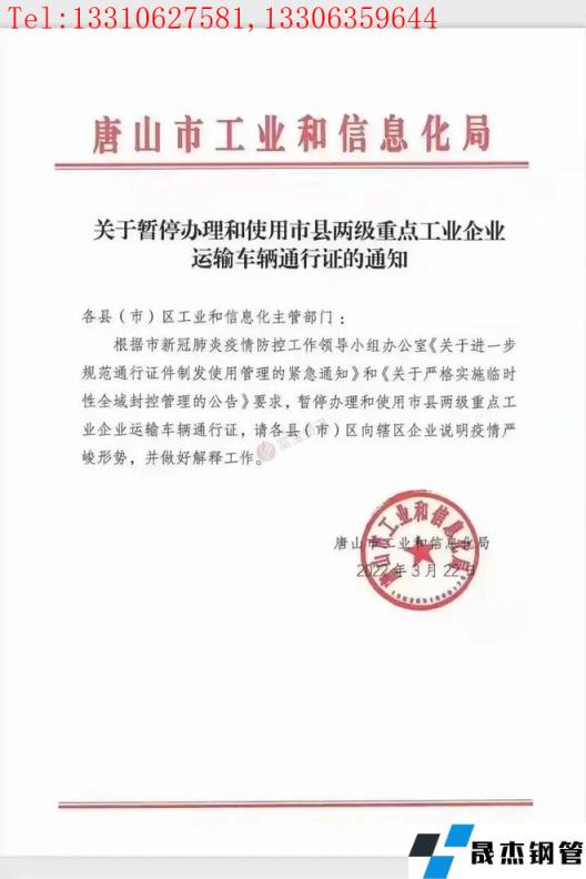 針對現階段唐山市轄區26家長流程鋼企調研了解如下:截止目前,唐山長流程鋼企在生產方面目前面臨最嚴重的問題仍然是由于交通管制帶來的原料進廠、成品材外輸。關于21日發布了重點工業企業辦理運輸車輛通行證的通知,據調研了解,目前長流程鋼企在文件下發后均積極申請,但相關部門對于審批相對謹慎,所以整體并未真正落地,僅個別無縫鋼管廠家少數原料運輸車輛得以批復,但也不能完全緩解整體原料緊張的局面。