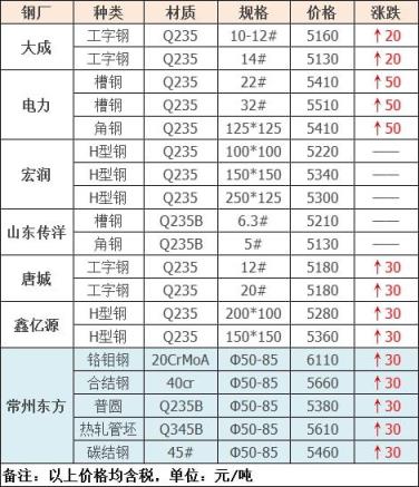 今日型材、特鋼共7家無縫鋼管廠家調價發布,其中: