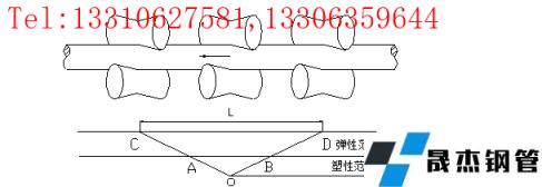 縱向彎曲矯直是使厚壁鋼管產生與彎曲相反方向的塑性變形來達到矯直彎曲的目的,而不彎曲的管子斷面只產生彈性變形,塑性變形區占支撐距的40%長度。