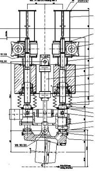 軋輥調(diào)整裝置保證按照軋制要求調(diào)整孔喉和輾軋角,由兩個電動壓下絲杠完成的,它們可單獨操作,也可以同時操作,當(dāng)兩個壓下絲杠進行反向運動時,可調(diào)整軋輥的輾軋角,確定輾軋角后,兩個絲杠同時壓下或抬起可調(diào)整軋輥的孔喉尺寸。在兩個壓下絲杠之間,機架內(nèi)有一個液壓缸與軋輥座連接,它的作用是保持輥箱的穩(wěn)定,避免壓下絲杠端部與轉(zhuǎn)轂之間產(chǎn)生間隙,我們稱之為平衡缸。