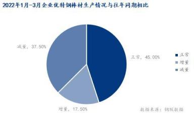 1、2022年1-3月的優特鋼棒材生產情況與往年同期相比近一半處于正常水平,有37%的無縫鋼管廠產量不及去年同期。