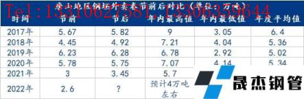據統計:截至1月27日唐山主要倉庫及港口同口徑鋼坯庫存30.17萬噸,周比上升1.92萬噸,春節臨近,放假廠商增加,實際需求減少,直發資源陸續入庫,但因無縫厚壁鋼管廠家減產直發量少,疊加價格高位,商家冬儲意愿不強,壘庫幅度仍小。目前鋼坯庫存遠低于近幾年同期,疊加市場預期向好,對于市場預售的春節期間直發資源,下游調坯廠家拿貨意愿偏強,或導致春節期間壘庫預期低于去年。