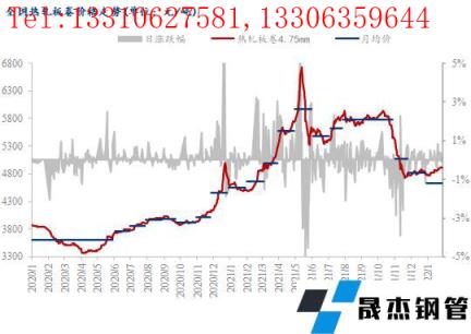 截至1月30日,國內24個主要城市4.75mm熱軋板卷均價為4914元/噸,月環比上漲126元/噸,較去年同期上漲413元/噸。