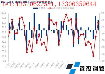 從相關指數來看,本月成品材出廠價指數大幅回升25.9個百分點至73.6,無縫厚壁鋼管廠家成品材庫存指數大幅回升23.8個百分點至61.2,同時原材料采購價指數大幅回升29.2個百分點至79.7,國內原材料采購量指數回升4.8個百分點至50.9,國外原材料采購量指數持平為43.1。
