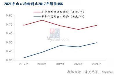 但中國芯片行業(yè)與歐美日相比存在較大差距,高端芯片高度依賴進(jìn)口。據(jù)海關(guān)總署數(shù)據(jù),我國2017年進(jìn)口均價為0.69美元/個,出口均價為0.34美元/個,2021年進(jìn)口均價為0.7美元/個,出口均價為0.5美元/個。從這個數(shù)據(jù)來看我國仍維持進(jìn)口高端芯片,出口中低端芯片的過程。但2021年出口均價同比2017年增長44.71%,說明我國的半導(dǎo)體逐漸往高端芯片的生產(chǎn)靠近。國務(wù)院數(shù)據(jù)顯示,我國芯片自給率要在2025年達(dá)到70%,難度很大,“中國芯”道阻且艱。