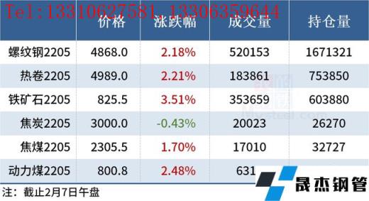 免責聲明:本網站(山東聊城晟杰無縫鋼管廠m.vsocial.cn)刊載的“2022年02月07日午報:鋼價全線上漲,鐵礦石期貨漲逾3%”等均源于網絡,版權歸原作者所有,且僅代表原作者觀點,本文所載信息僅供參考。轉載僅為學習與交流之目的,如無意中侵犯您的合法權益,請及時聯系刪除。本網站刊登此篇文章并不意味著本站贊同其觀點或證實其內容的真實性,我們不對其科學性、嚴肅性等作任何形式的保證。如果侵犯了您的版權,請盡快聯系我們予以撤銷,謝謝合作!