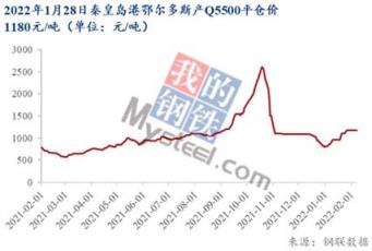 在印尼煤炭出口禁令助推市場(chǎng)看多情緒之下,去年12月觀望等待動(dòng)力煤港口價(jià)格下跌至700元/噸基準(zhǔn)價(jià)的下游采購和貿(mào)易商一擁而上,紛紛加入搶購大軍。不僅如此,由于今年節(jié)前補(bǔ)庫窗口期短、冬奧會(huì)電廠補(bǔ)庫和港口倒掛等利多因素發(fā)酵,秦港Q5500動(dòng)力煤價(jià)格一改12月加速下滑的頹勢(shì),在1月初開始強(qiáng)力反彈,截至1月28日秦皇島港鄂爾多斯產(chǎn)Q5500動(dòng)力煤平倉價(jià)1180元/噸,較上月底增長(zhǎng)47.5%,價(jià)格曲線也走出了深V趨勢(shì)。