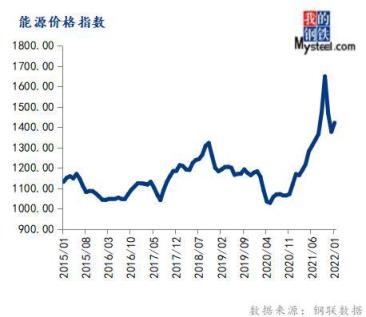 1月份能源價格指數為1421.18,環比上漲3.24%,同比上漲21.58%。