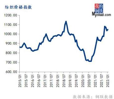 1月份紡織價格指數為1046.62,環比上漲1.07%,同比上漲22.72%。