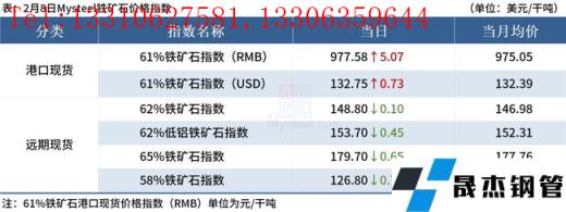 ◎2月8日,全國主港鐵礦石成交60.10萬噸,環比增17.4%。
