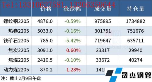 免責聲明:本網站(山東聊城晟杰無縫鋼管廠m.vsocial.cn)刊載的“2022年02月09日午報:鋼價多數上漲,鐵礦石期貨跌逾5%”等均源于網絡,版權歸原作者所有,且僅代表原作者觀點,本文所載信息僅供參考。轉載僅為學習與交流之目的,如無意中侵犯您的合法權益,請及時聯系刪除。本網站刊登此篇文章并不意味著本站贊同其觀點或證實其內容的真實性,我們不對其科學性、嚴肅性等作任何形式的保證。如果侵犯了您的版權,請盡快聯系我們予以撤銷,謝謝合作!