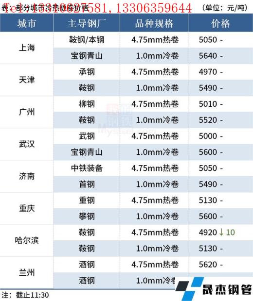 ◎樂從:10日早盤熱卷市場價格暫穩(wěn),4.75以上普柳燕5010-5020,2.75普5050-5200錳5200-5220。(單位:元/噸)