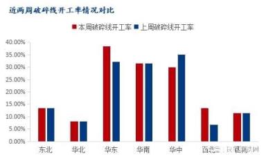 截止2月09日,統(tǒng)計(jì)全國242條廢鋼破碎線開工情況,廢鋼破碎線開工率為26.64%,較上周增2.87%,本周全國廢鋼破碎線開工率小增。全國區(qū)域?qū)Ρ瓤矗瑬|北、華北、華南、西南地區(qū)破碎線開工率較上周持平,華東地區(qū)破碎線開工率較上周增6.25%,華中地區(qū)破碎線開工率較上周降5%,西北地區(qū)破碎線開工率較上周增6.67%。