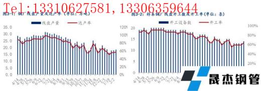 2、區(qū)域內(nèi)建材無縫厚壁鋼管廠家生產(chǎn)積極性尚可,生產(chǎn)節(jié)奏較節(jié)前及節(jié)中無明顯變化。其中,螺紋由于AG鐵水供應(yīng)減量選擇保板停線故本周產(chǎn)線停產(chǎn),小幅減量0.5萬噸,其余廠家變化不大,產(chǎn)能利用率仍處于近5月以來的相對高位水平;盤線本周復(fù)產(chǎn)一條產(chǎn)線,但總產(chǎn)量僅環(huán)比增加0.5萬噸,波動較小,整體產(chǎn)量處于自去年7月以來的相對低位水平,部分無縫厚壁鋼管廠家計劃3月才復(fù)產(chǎn)。