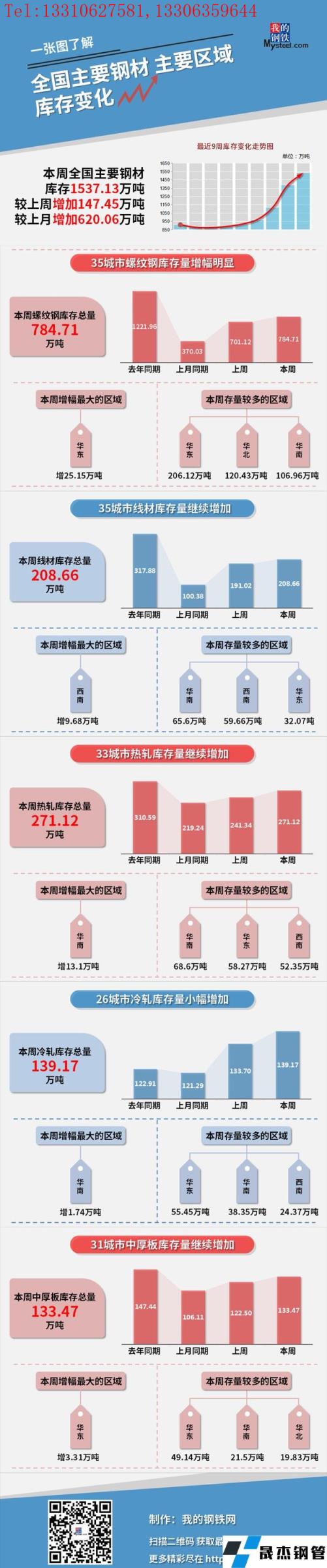 本周,全國主要厚壁無縫鋼管社會庫存1537.13萬噸,較上周增加147.45萬噸,較上月增加620.06萬噸;螺紋鋼庫存總量784.71萬噸。