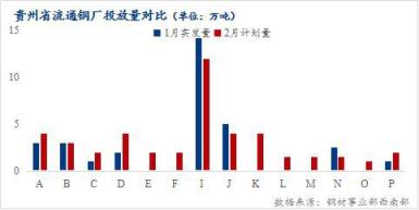 2、2月份貴州省建筑厚壁無縫鋼管資源計劃投放量45萬噸,較上個月增加11萬噸萬噸,增幅達32.35%,主要是2月中旬本地電爐企業(yè)基本復產(chǎn),資源投放加大,而貴州價格逐步擺脫洼地,春節(jié)期間省外累庫速度明顯,2月份恐加大對貴州區(qū)域資源投放。