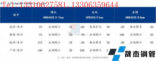 統一單位后,武漢高于長沙53元/噸,南昌低于長沙53元/噸,杭州高于長沙1115元/噸,廣州高于長沙14元/噸。長沙資源可以流向南昌。