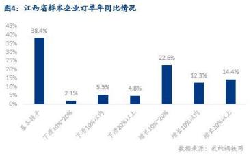 3、對于訂單情況,今年企業訂單狀況相對去年農歷同期有明顯增長,其中訂單數增長10%以上的企業占比49.3%。企業訂單較去年持平樣本比例為38.4%,僅12.4%的樣本企業訂單狀況較去年有所下滑。