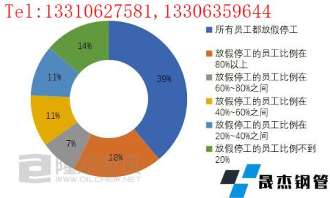 2022年春節(jié)企業(yè)整體放假停工的比例有所提高。參與調(diào)研樣本企業(yè)中,企業(yè)所有員工放假停工占比在39%,相比上年上升5個(gè)百分點(diǎn);放假停工比例不到20% 的占比在14%;放假停工比例在80%以上的占比為18%,在放假停工比例在20%-80%之間占比為29%.