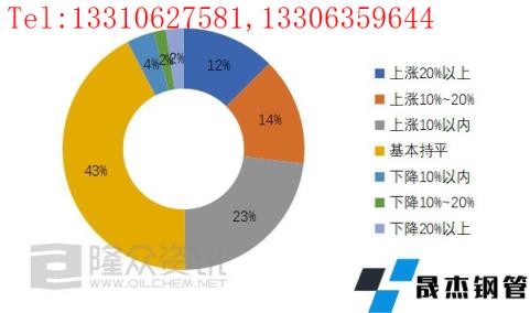 本次調(diào)研期間,57%的企業(yè)樣本企業(yè)庫(kù)存與上年度持平,百分比較上年度調(diào)研上升了6個(gè)點(diǎn)。32%的企業(yè)庫(kù)存上漲,相比上年度持平;11%的企業(yè)庫(kù)存下降,同比減少3個(gè)百分點(diǎn)。