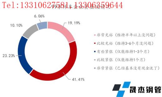 從圖20上看,整體企業(yè)資金流能維持半年以上充裕條件的占比19.19%,維持3-6個月周期的占比為41.41%,僅能維持1-3個月周期的的占比為23.23%,僅能維持1個月周期的占比為10.10%,現(xiàn)金流非常緊張的占比為6.06%。