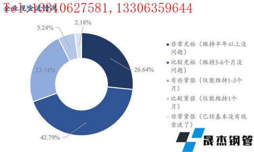調(diào)研企業(yè)現(xiàn)金流情況整體尚可,26.64%的企業(yè)表示非常充裕,42.79%的企業(yè)表示比較充裕,30.57%的企業(yè)表示資金存在緊張問(wèn)題。