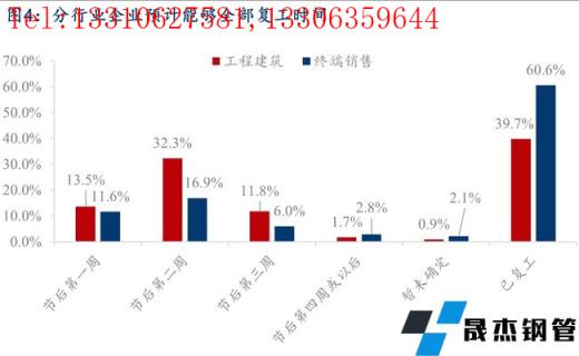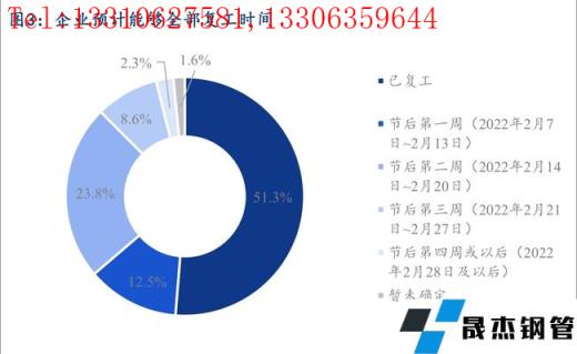 分行業(yè)來(lái)看,終端銷(xiāo)售樣本企業(yè)中,60.6%的企業(yè)目前已經(jīng)完全復(fù)工,節(jié)后第二周內(nèi)能夠復(fù)工的樣本企業(yè)占比可以達(dá)到89.1%,主要由于今年節(jié)前冬儲(chǔ)備貨情況整體較少,節(jié)后開(kāi)門(mén)紅的行情走勢(shì)下,很多企業(yè)提前復(fù)工,積極入市詢(xún)價(jià)采購(gòu),以爭(zhēng)取利潤(rùn)最大化。工程建筑樣本企業(yè)中,39.7%的企業(yè)目前已經(jīng)完成復(fù)工,節(jié)后第二周內(nèi)能夠復(fù)工的樣本企業(yè)占比可以達(dá)到85.6%,整體進(jìn)度情況也要好于往年同期水平。僅0.9%的工程建筑企業(yè)和2.1%的終端銷(xiāo)售企業(yè)暫未有明確的復(fù)工時(shí)間,主要是受疫情以及冬奧會(huì)的影響。