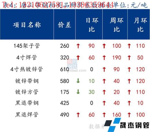 145帶鋼出廠4900元/噸,較節前漲130元/噸。355帶鋼市場現貨價格4920元/噸,較節前漲120元/噸、焊管價格5050元/噸,鍍鋅管價格5750元/噸,較節前持平。