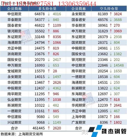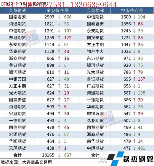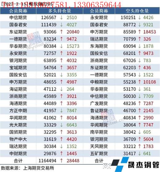 截至2月15日收盤(pán),螺紋鋼2205收4728元/噸,跌2.76%;熱卷2205收4843元/噸,跌2.69%;鐵礦石2205收699元/噸,跌9.98%。