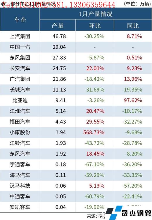 免責聲明:本網站(山東聊城晟杰無縫鋼管廠m.vsocial.cn)刊載的“1月我國汽車產銷降幅明顯,多數車企呈現雙位數下跌”等均源于網絡,版權歸原作者所有,且僅代表原作者觀點,本文所載信息僅供參考。轉載僅為學習與交流之目的,如無意中侵犯您的合法權益,請及時聯系刪除。本網站刊登此篇文章并不意味著本站贊同其觀點或證實其內容的真實性,我們不對其科學性、嚴肅性等作任何形式的保證。如果侵犯了您的版權,請盡快聯系我們予以撤銷,謝謝合作!