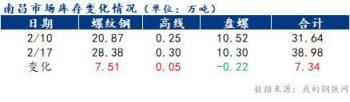 本周省內建筑厚壁無縫鋼管社會庫存繼續呈明顯升庫態勢,建材市場庫存持續累庫。截止2月17日,據我網調研江西省主流市場包括南昌、贛州、九江、新余和鷹潭五大市場的樣本倉庫建筑厚壁無縫鋼管社會庫存總量為61.19萬噸,較上周增加9.78萬噸,增幅19.02%。