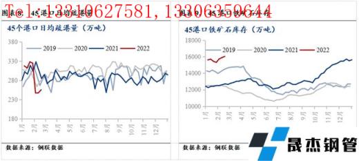 自2021年11月中旬以來,鐵礦石價格上漲400元/噸,漲幅達(dá)69.32%;相應(yīng)的高爐開工率下降2.15%。市場普遍認(rèn)為鐵礦石價格上漲偏離實際基本面情況,疊加2月15日鐵礦石迎來強監(jiān)管,鐵礦石價格出現(xiàn)回落。2月18日,本周五鐵礦石價格820元/噸,較上周下跌133元/濕噸。鐵礦石價格下跌從兩個方面影響厚壁無縫鋼管價格:A、厚壁無縫鋼管成本下移,厚壁無縫鋼管支撐減弱;B、扭轉(zhuǎn)黑色產(chǎn)業(yè)鏈偏樂觀的市場情緒,降低厚壁無縫鋼管追漲的風(fēng)險偏好,從而帶動厚壁無縫鋼管價格下跌。