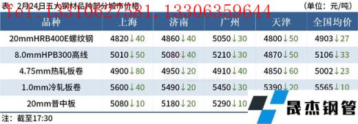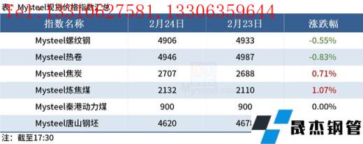 ◎ 2月24日統(tǒng)計新口徑114家無縫厚壁鋼管廠家進口燒結(jié)粉總庫存3317.49萬噸,燒結(jié)粉總?cè)蘸?5.47萬噸。原口徑64家無縫厚壁鋼管廠家進口燒結(jié)粉總庫存1568.97萬噸,燒結(jié)粉總?cè)蘸?7.32萬噸,庫存消費比33,燒結(jié)礦中平均使用進口礦配比86.39%,無縫厚壁鋼管廠家不含稅平均鐵水成本3107元/噸。詳情>>