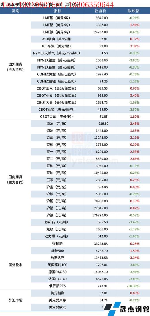 免責(zé)聲明:本網(wǎng)站(山東聊城晟杰無(wú)縫鋼管廠m.vsocial.cn)刊載的“受近期局勢(shì)影響大宗商品價(jià)格一覽表(2月24日)”等均源于網(wǎng)絡(luò),版權(quán)歸原作者所有,且僅代表原作者觀點(diǎn),本文所載信息僅供參考。轉(zhuǎn)載僅為學(xué)習(xí)與交流之目的,如無(wú)意中侵犯您的合法權(quán)益,請(qǐng)及時(shí)聯(lián)系刪除。本網(wǎng)站刊登此篇文章并不意味著本站贊同其觀點(diǎn)或證實(shí)其內(nèi)容的真實(shí)性,我們不對(duì)其科學(xué)性、嚴(yán)肅性等作任何形式的保證。如果侵犯了您的版權(quán),請(qǐng)盡快聯(lián)系我們予以撤銷,謝謝合作!
