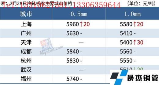 冷軋板卷:2月28日,全國24個主要城市1.0mm冷卷均價5545元/噸,較上個交易日上漲5元/噸。據(jù)貿(mào)易商反饋,今日冷軋行情在延續(xù)前期偏悲觀情緒大部分地區(qū)弱穩(wěn)運行,少部分地區(qū)暗降出貨,兌現(xiàn)情緒漸濃,維持出貨為主。下游行業(yè)全面復(fù)工復(fù)產(chǎn),多按需采購,備貨意愿不高。預(yù)計3月1日國內(nèi)冷軋現(xiàn)貨價格多窄幅震蕩運行。